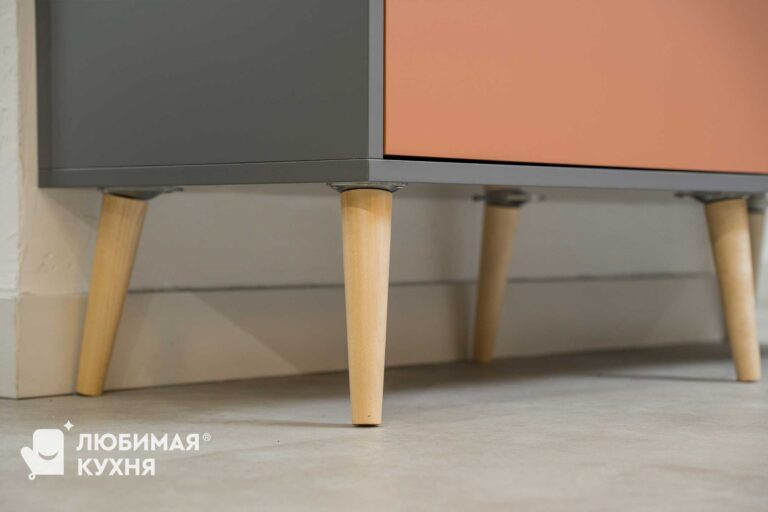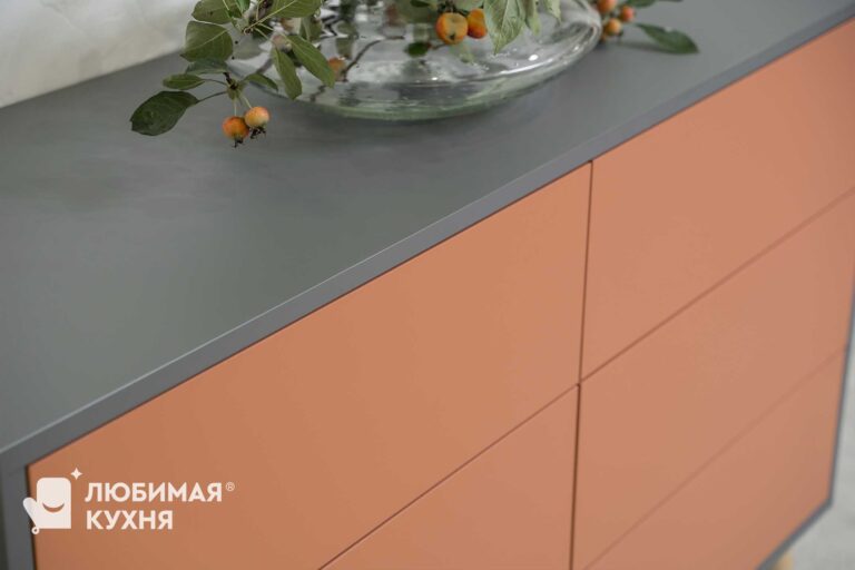 Угловой шкаф с распашной дверцей и дверцами на механизме Hettich Wing Line с Push to Open механизмом открытия с нажатия на фасад.